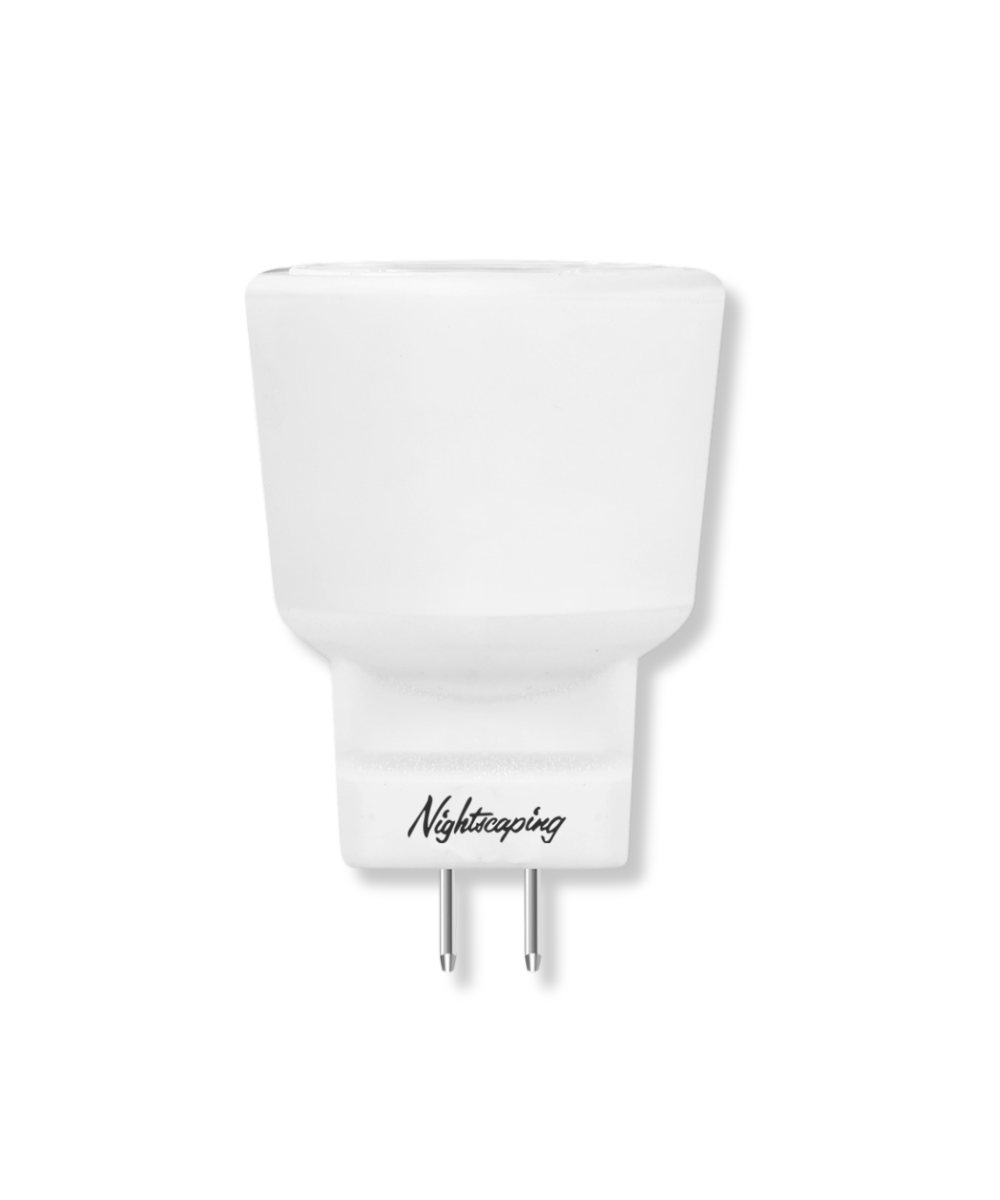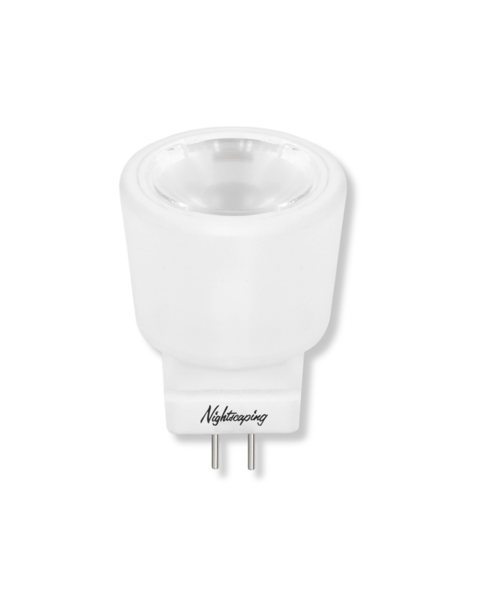 The 12V Nightscaping® MR8 retrofit lamp is an energy-efficient alternative to halogen MR8 lamps. It is suitable for use in most 12V G4 MR8 fixtures. Its long life (25,000hrs = >10x standard bulbs) is ideal for track lighting, pendants, ceiling fixtures, and outdoor lighting applications.