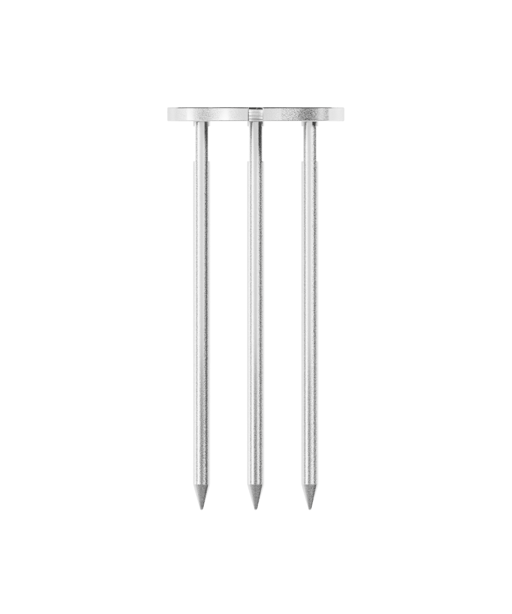 Three 9” stainless steel stabilizing pins provide unmatched anchoring strength in hard, rocky, or loose soils. Engineered for long-term ground contact and secure fixture placement in high-traffic or erosion-prone areas.