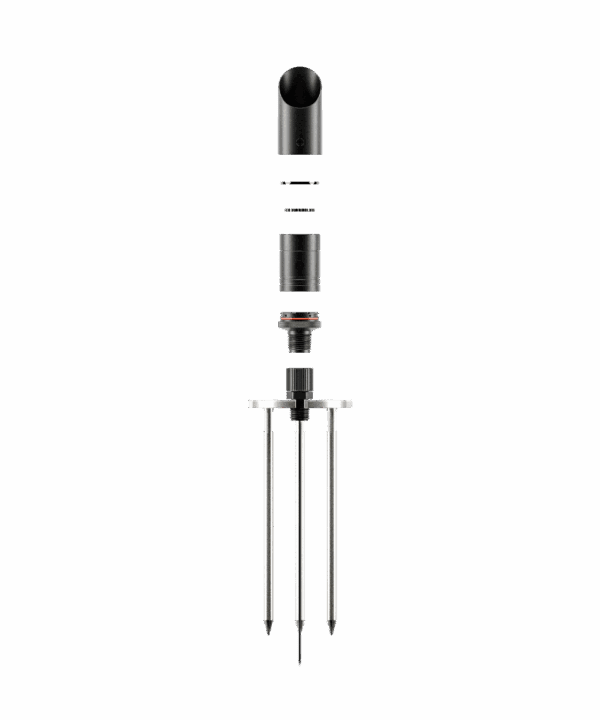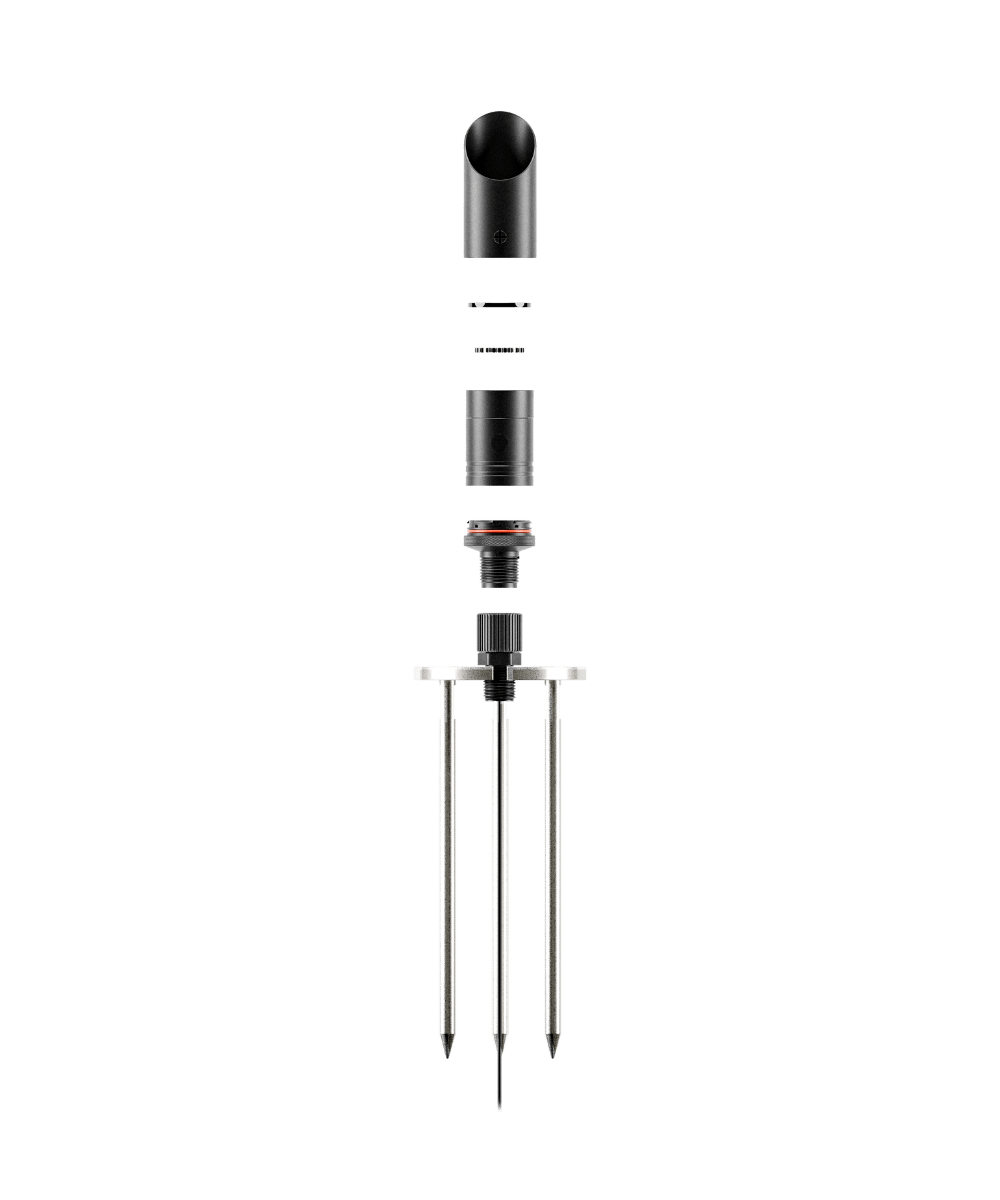 Tool-free assembly via Twist-lock system. The Trident Stake features three stainless steel rods to anchor securely into loose or sloped soils, providing maximum fixture stability.