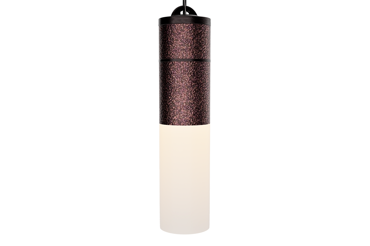 The Luna Pendatliter flaunts a coppervein finish with antique brass accents, giving your outdoor living space a touch of elegance. Its elongated cylinder frosted shade creates a subtle light source for outdoor sitting and dining areas. The shade is designed to encircle the 12V integrated LED to complete the aesthetic. It can be installed as a hanging light or a surface-mounted downlight, bringing an unrivaled level of light and sophistication.
