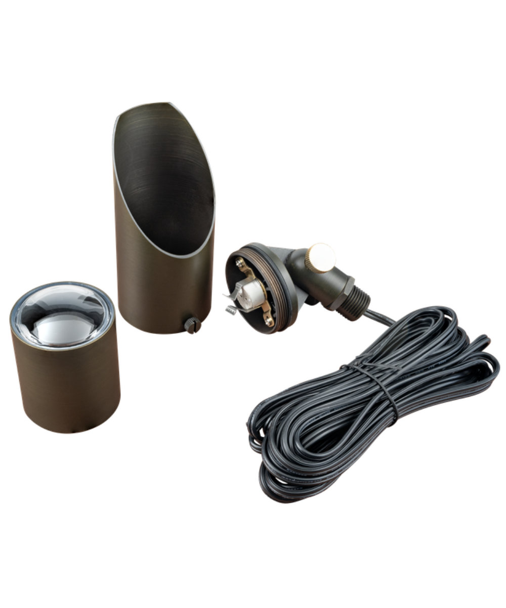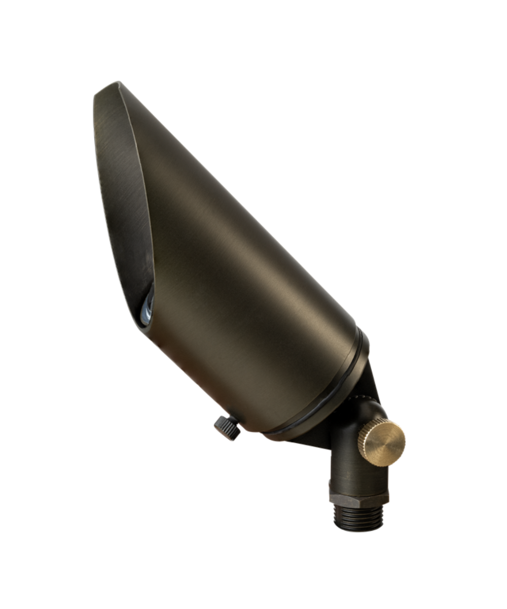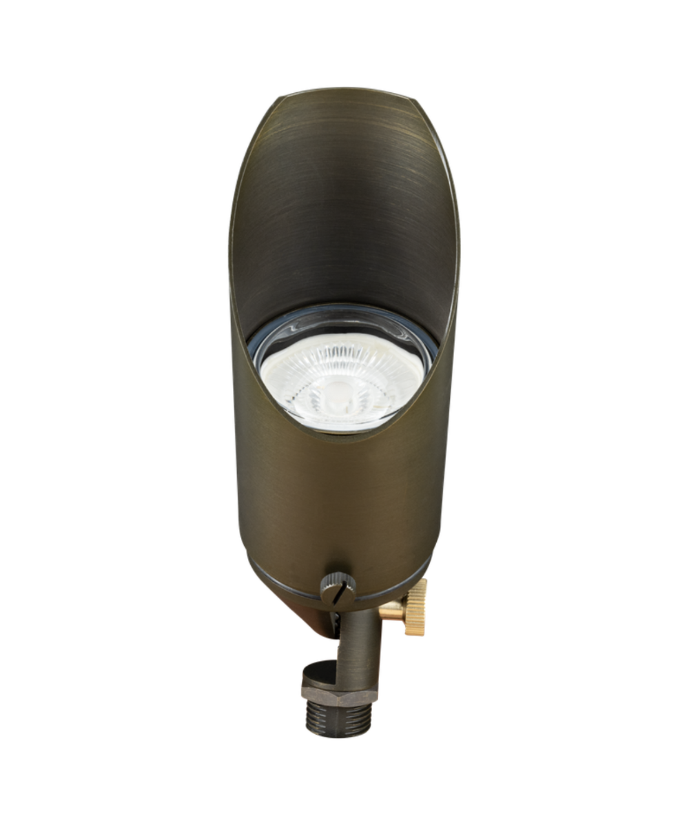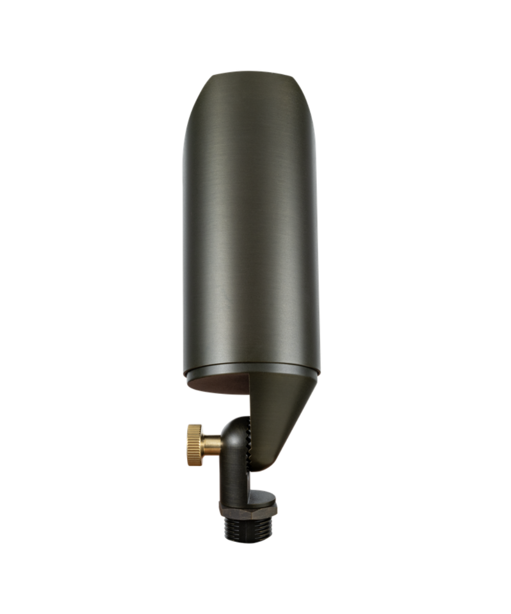 The Grenada Sidera Series brass LED MR-16, drop-in, directional bullet light by Nightscaping is ideal for illuminating tall trees, grazing buildings, or backlighting distant trees and shrubs. Use this luminaire anywhere a highly controlled, stake mounted up-light is needed. The Grenada bullet light is constructed of solid brass and is fully adjustable which allows for precise aiming. The luminaire also features an adjustable shroud to achieve the perfect beam spread or to control light glare.