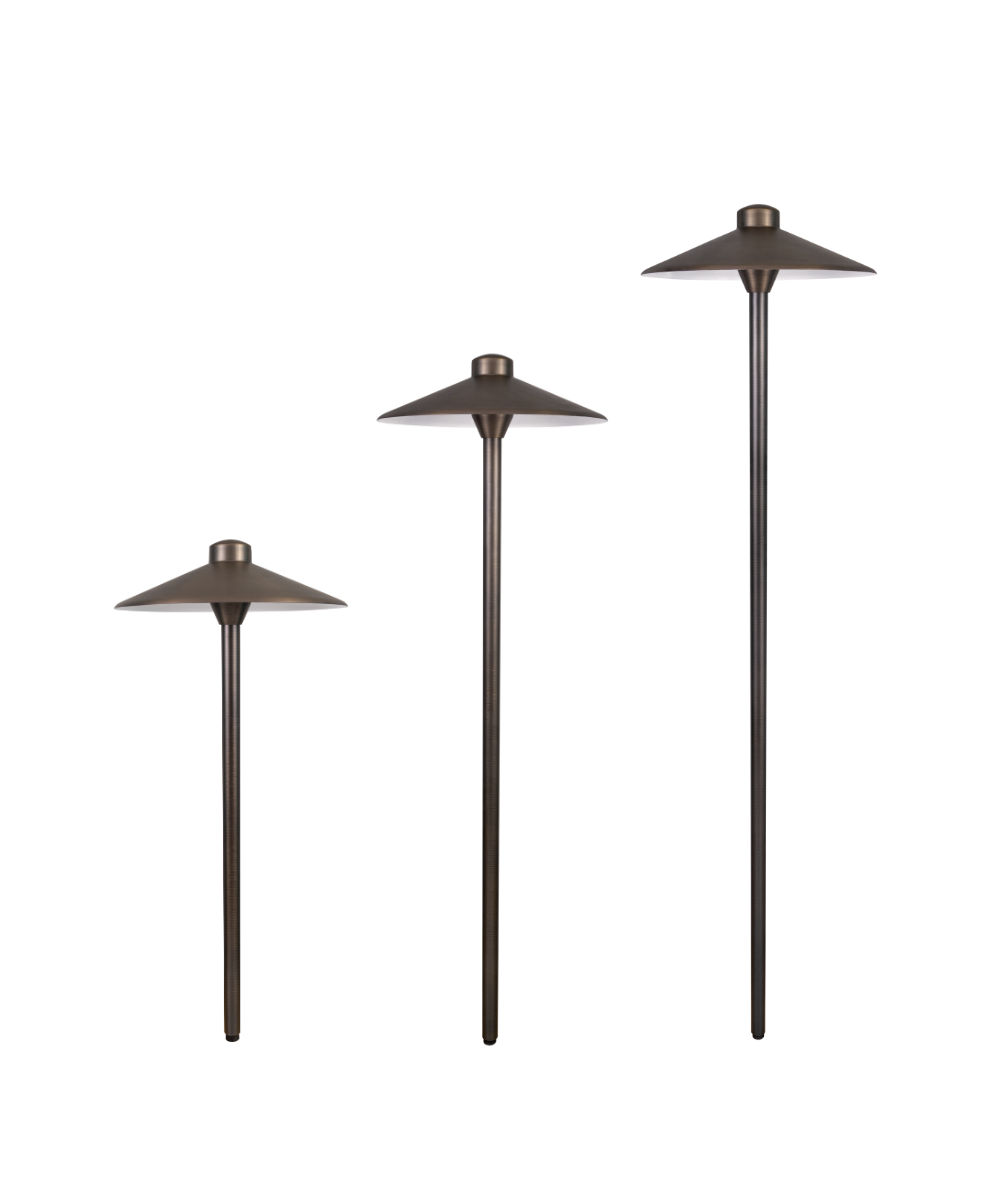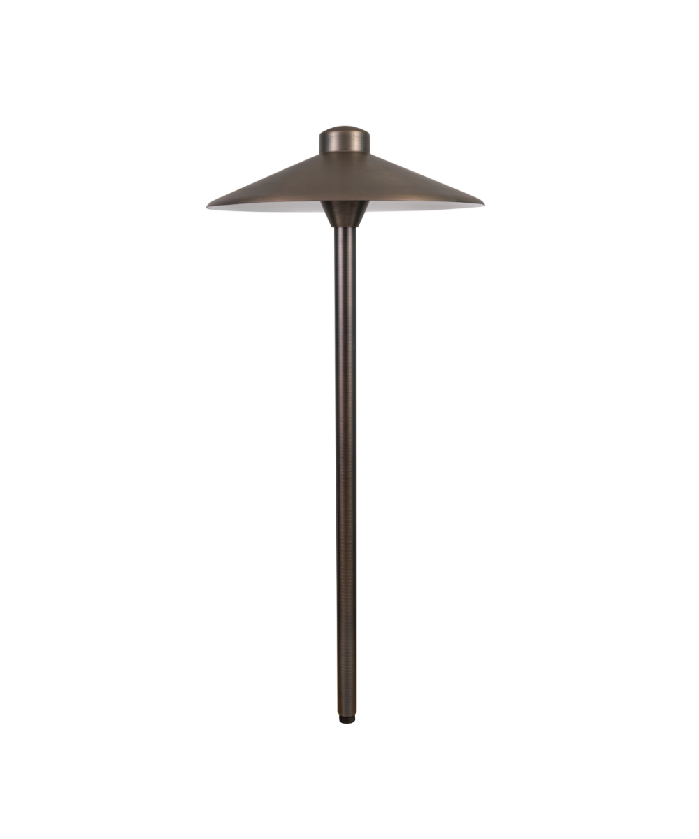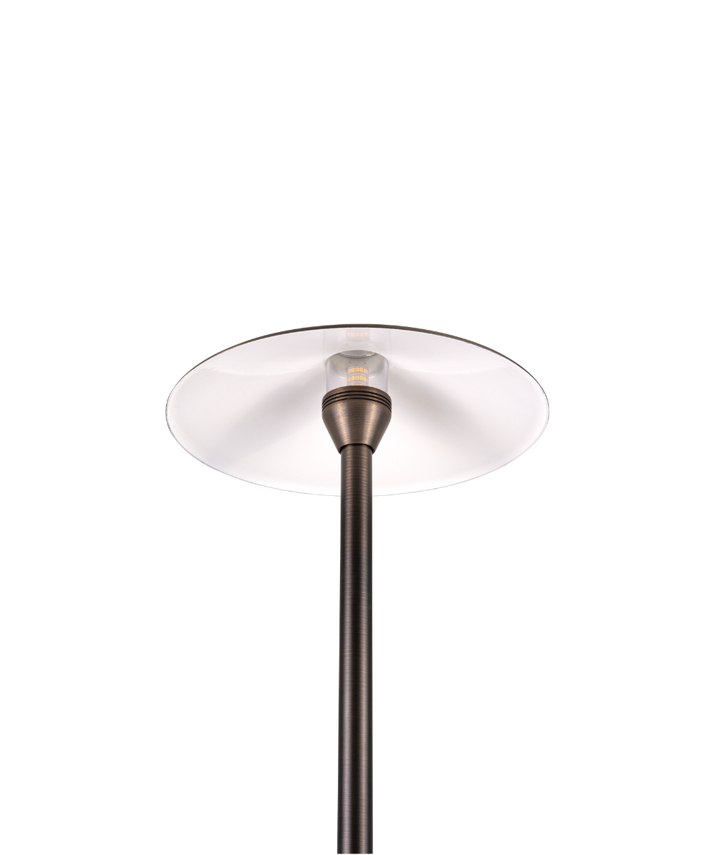 The Drammen Sidera Series G4 bi-pin, LED, drop-in luminaire by Nightscaping® is ideal for illuminating pathways and garden areas. The Drammen luminaire is a solid cast brass path light that comes in a variety of heights. The oversized cast brass hat with reflective white powder-coated interior helps the fixture to illuminate almost any garden or walking area.