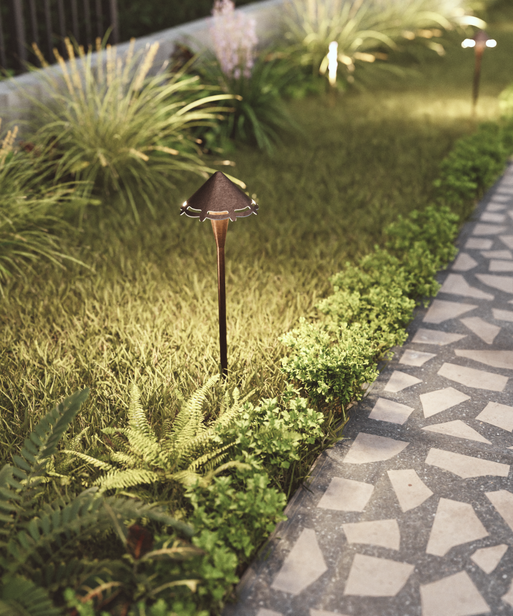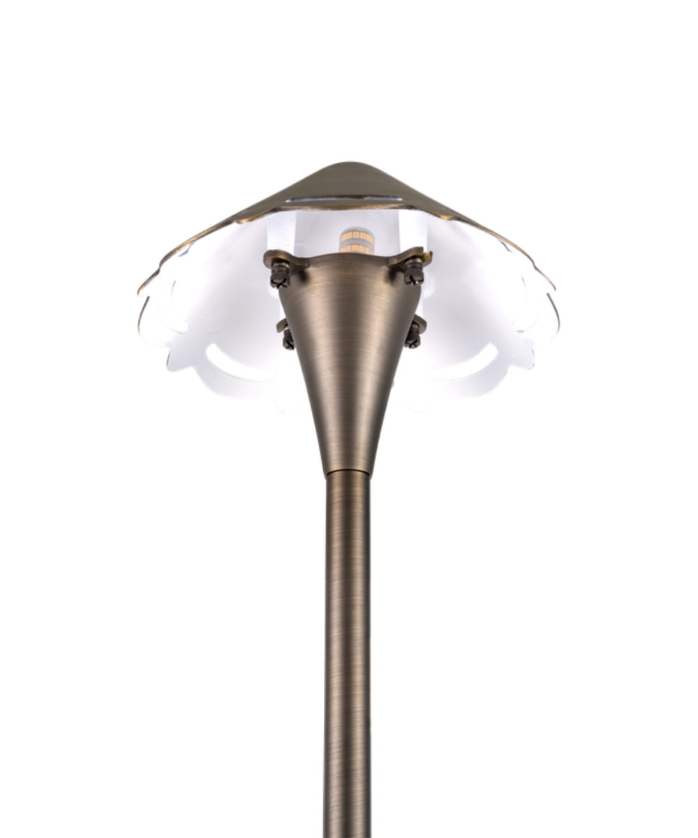 The Monaco Sidera Series G4 bi-pin, LED, drop-in luminaire by Nightscaping® is ideal for illuminating pathways and walking areas. The Monaco luminaire is a cast brass path-light that has an enclosed socket. The cast brass hat with reflective white powder-coated interior helps the fixture to illuminate almost any outdoor living space.