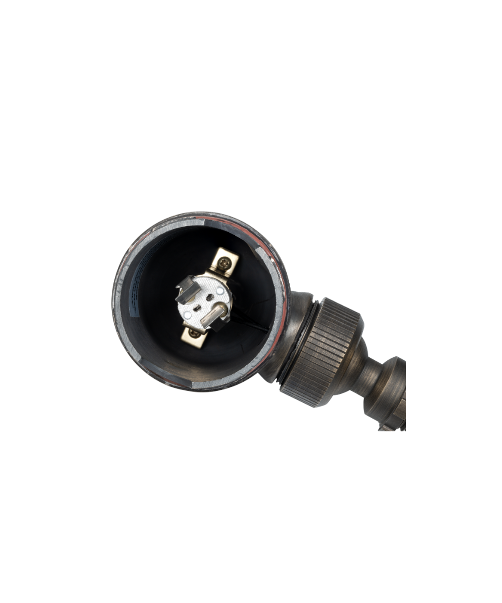 Fixed ceramic bi-pin socket with stainless steel retaining springs.