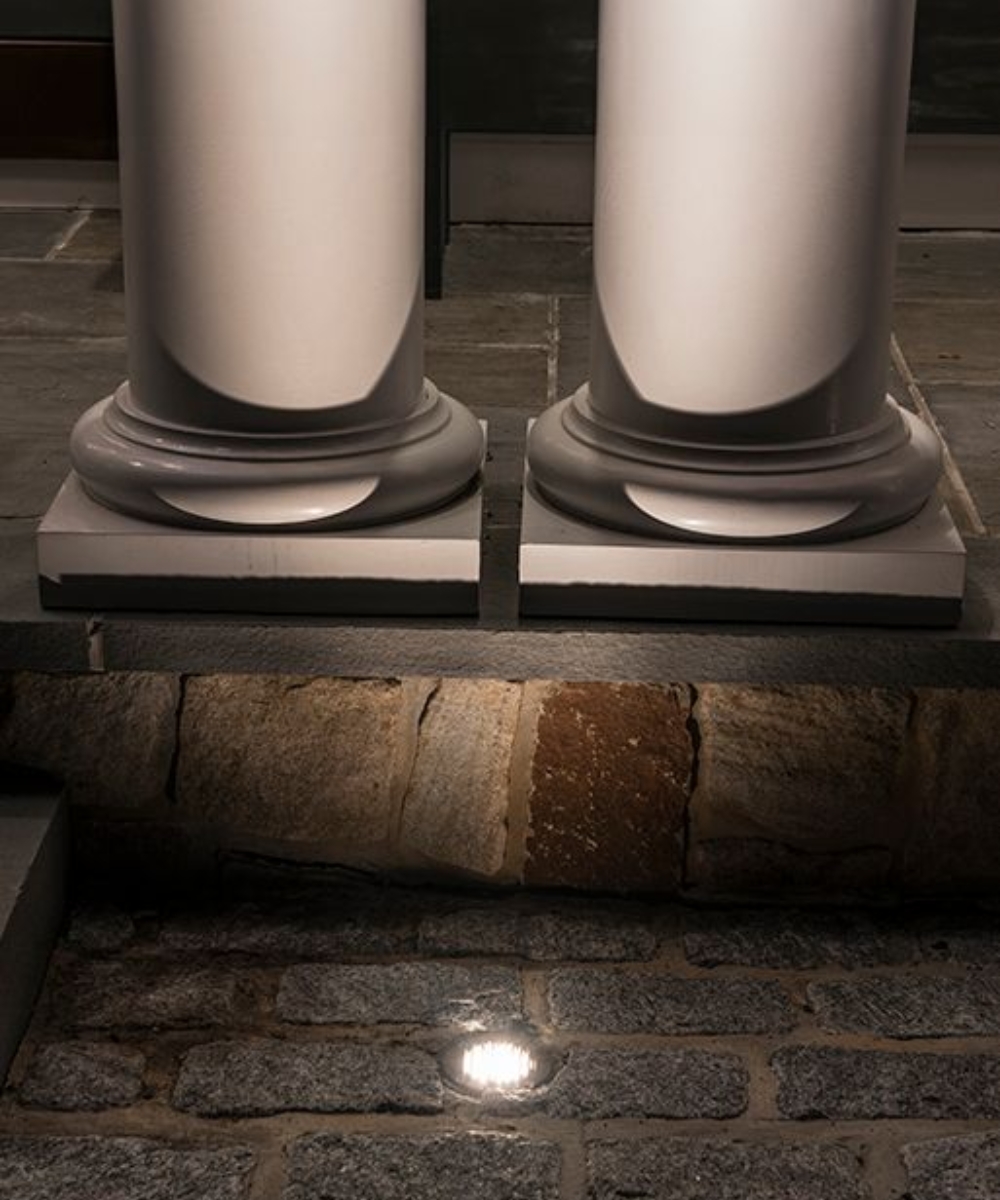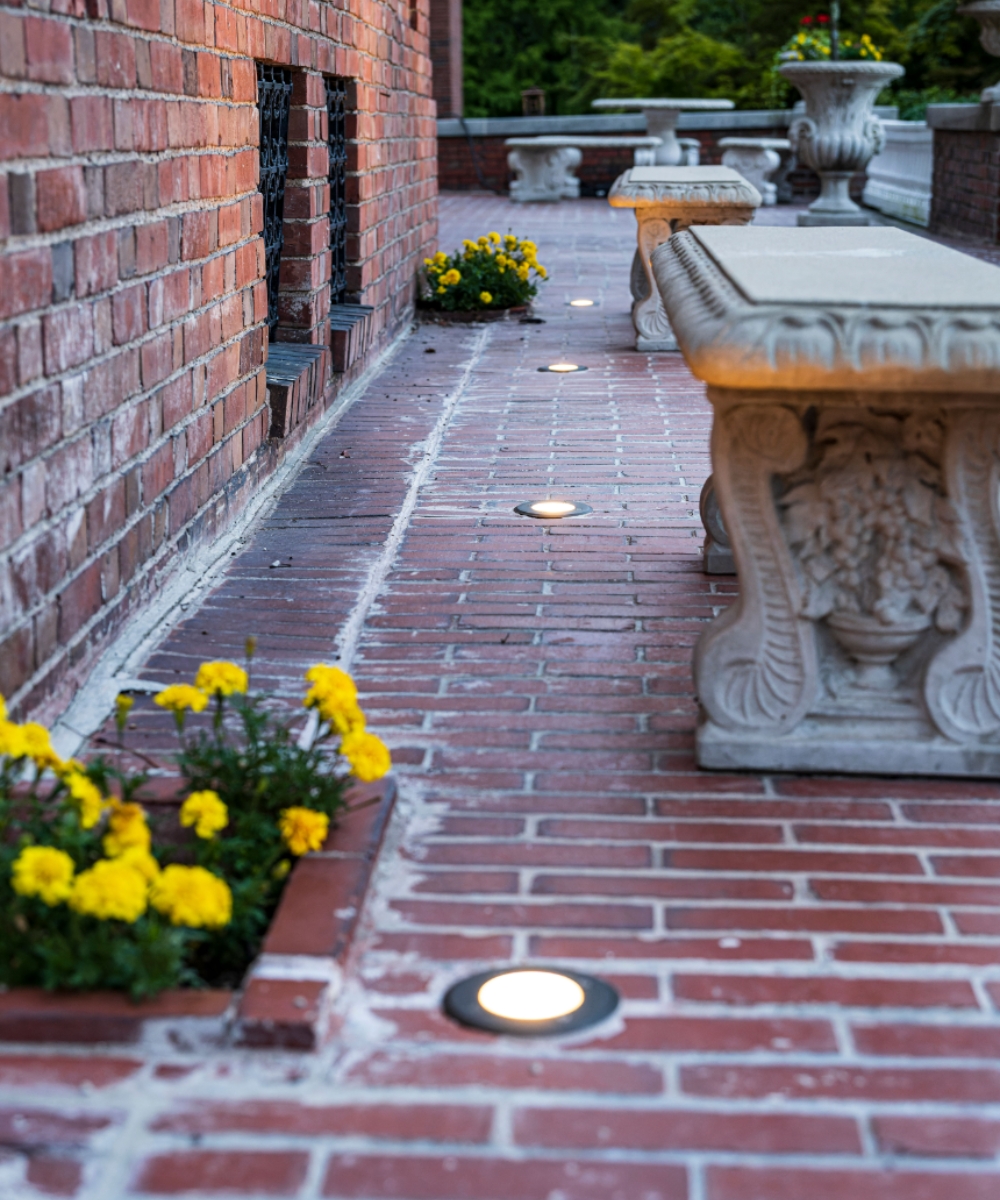 LENS: Flat cast brass, clear flat tempered glass lens.
