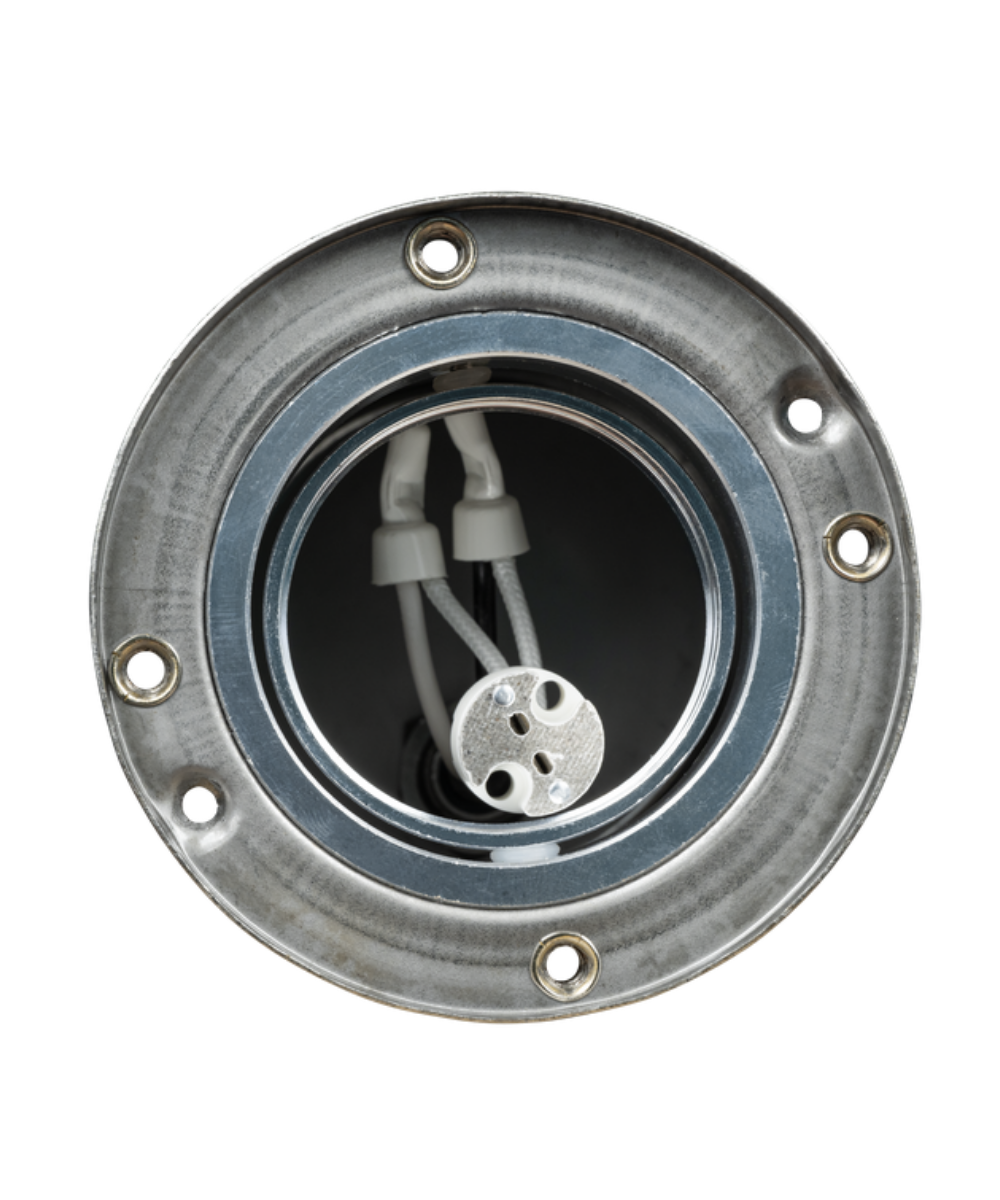 SOCKET/LAMP HOLDER: Ceramic GU5.3 bi-pin socket with stainless steel retaining springs, adjustable gimbal, accepts MR16 lamps with G4 or GY6.35 bases.