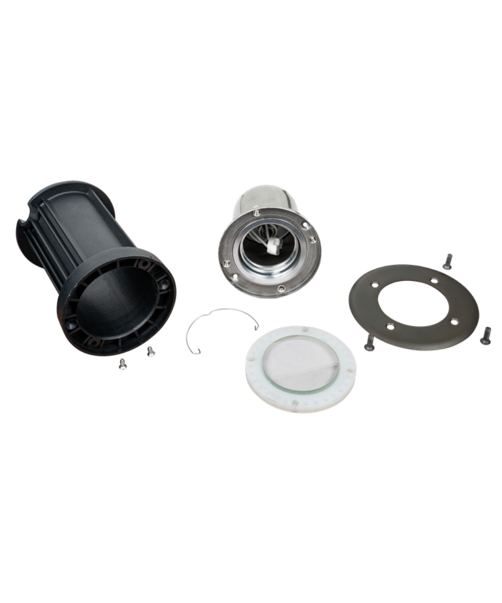 HOUSING: Cast brass faceplate. (Opens with 3 mm hex key.) ABS composite body. Aluminum gimbal.