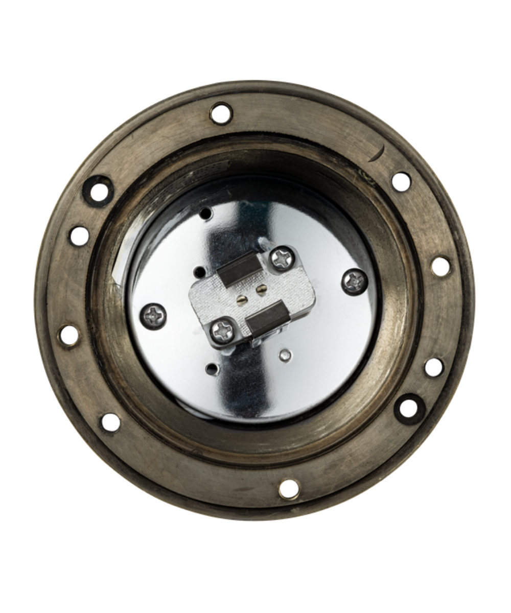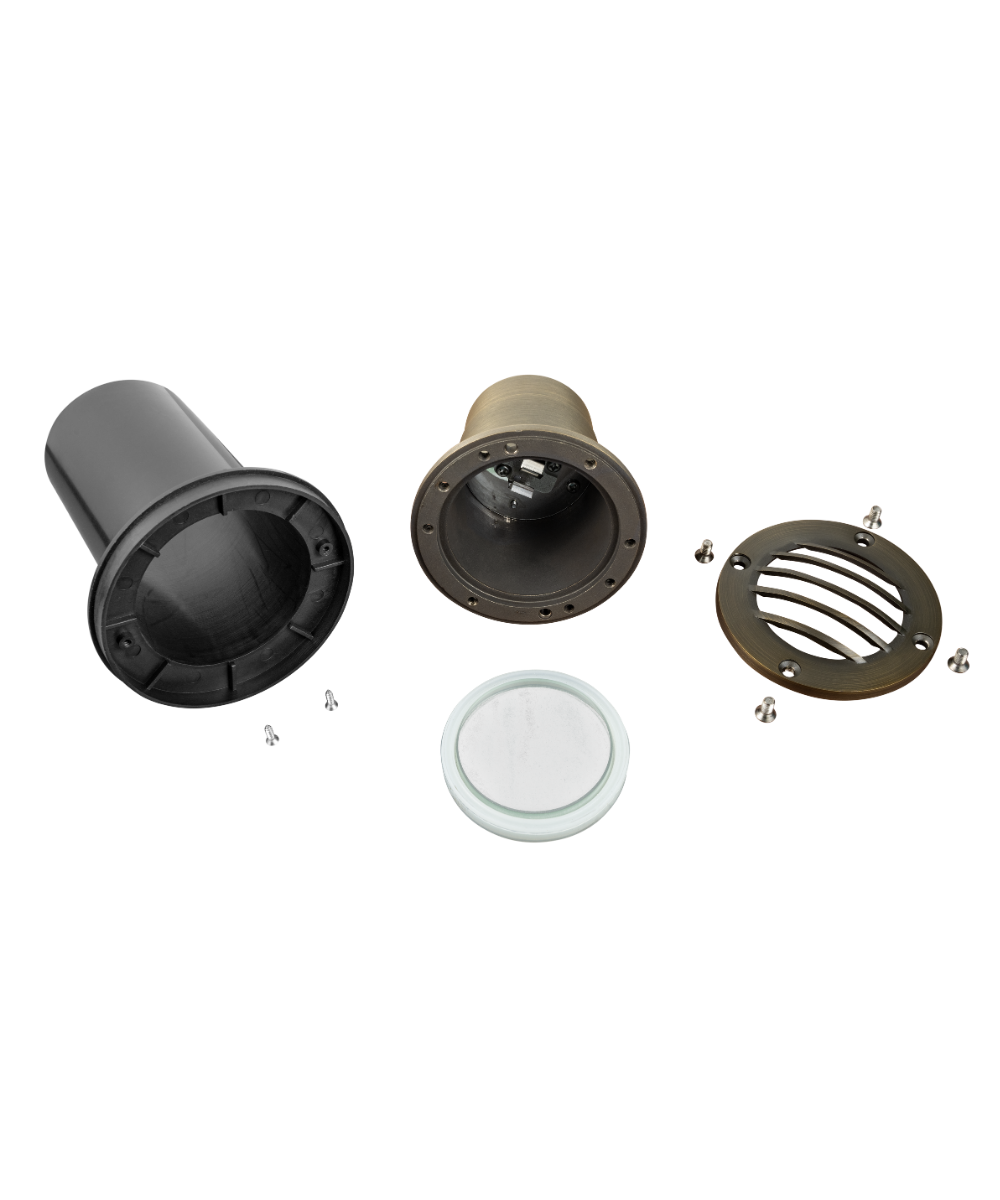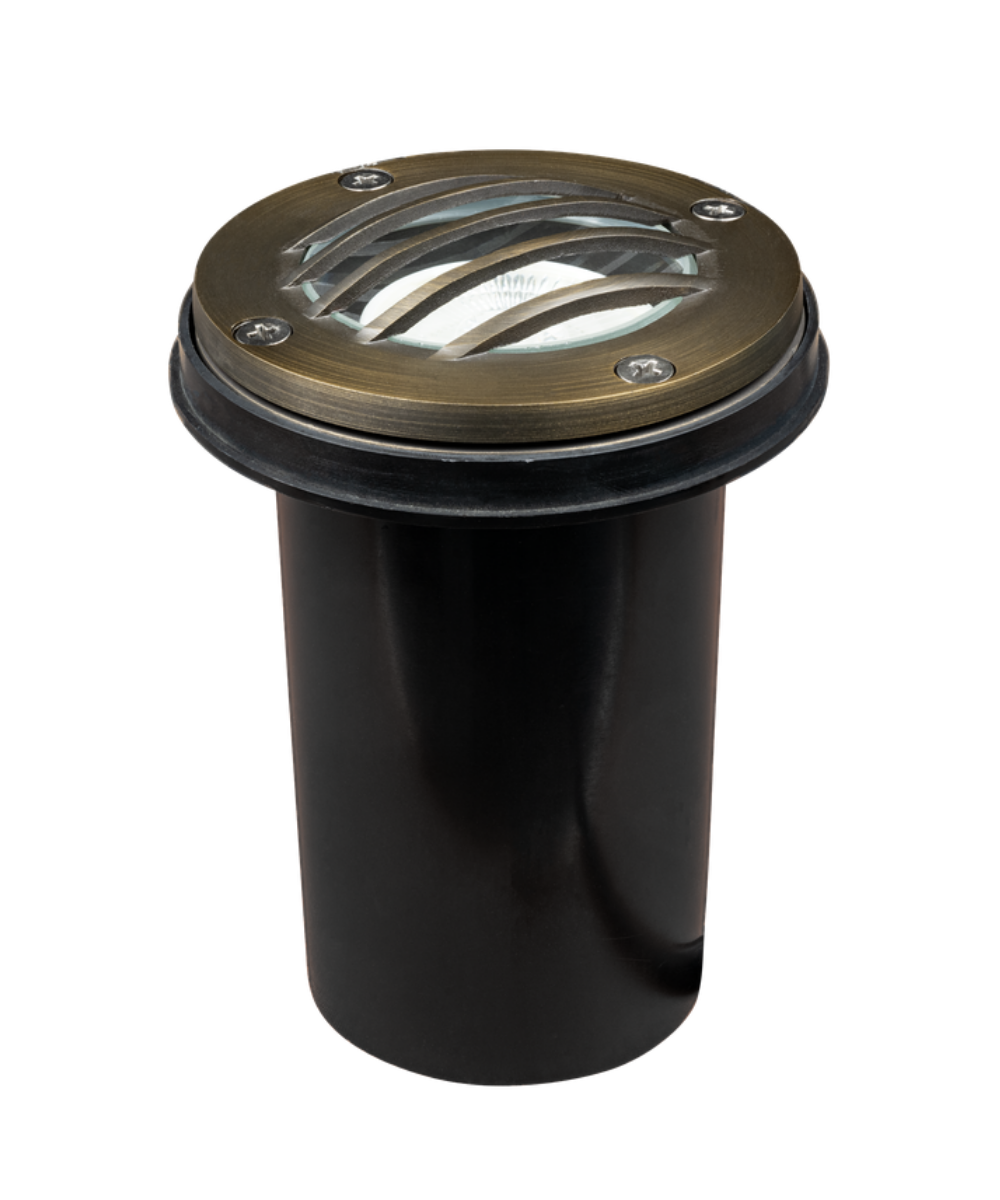 The Pica Sidera Series MR-16, LED, drop-in well light by Nightscaping® is ideal for illuminating home facades or up-lighting statues/yard art. The Pica in-ground well light has a slotted brass rock guard cover and adjustable gimble mechanism which allows for precise aiming when installing in concrete or hard surfaces where the luminaire needs to sit flush. The slotted rock guard brass cover not only helps to protect the glass lens but also helps to prevent light glare. The Pica is specifically designed for direct burial, flush mount installation in the landscape.