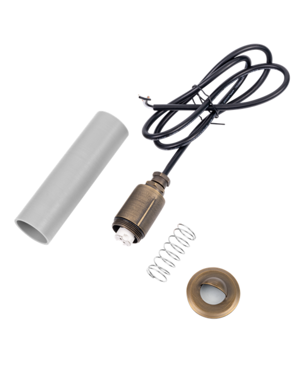 The Riverside Sidera Series MR-8, LED, drop-in micro well light by Nightscaping® is ideal for illuminating deck, dock or walking pathways. The Riverside in-ground micro well light has a hooded brass cover which helps to direct the light output in one direction. The Riverside is specifically designed for direct burial or flush mount installation in the landscape or hardscape.
