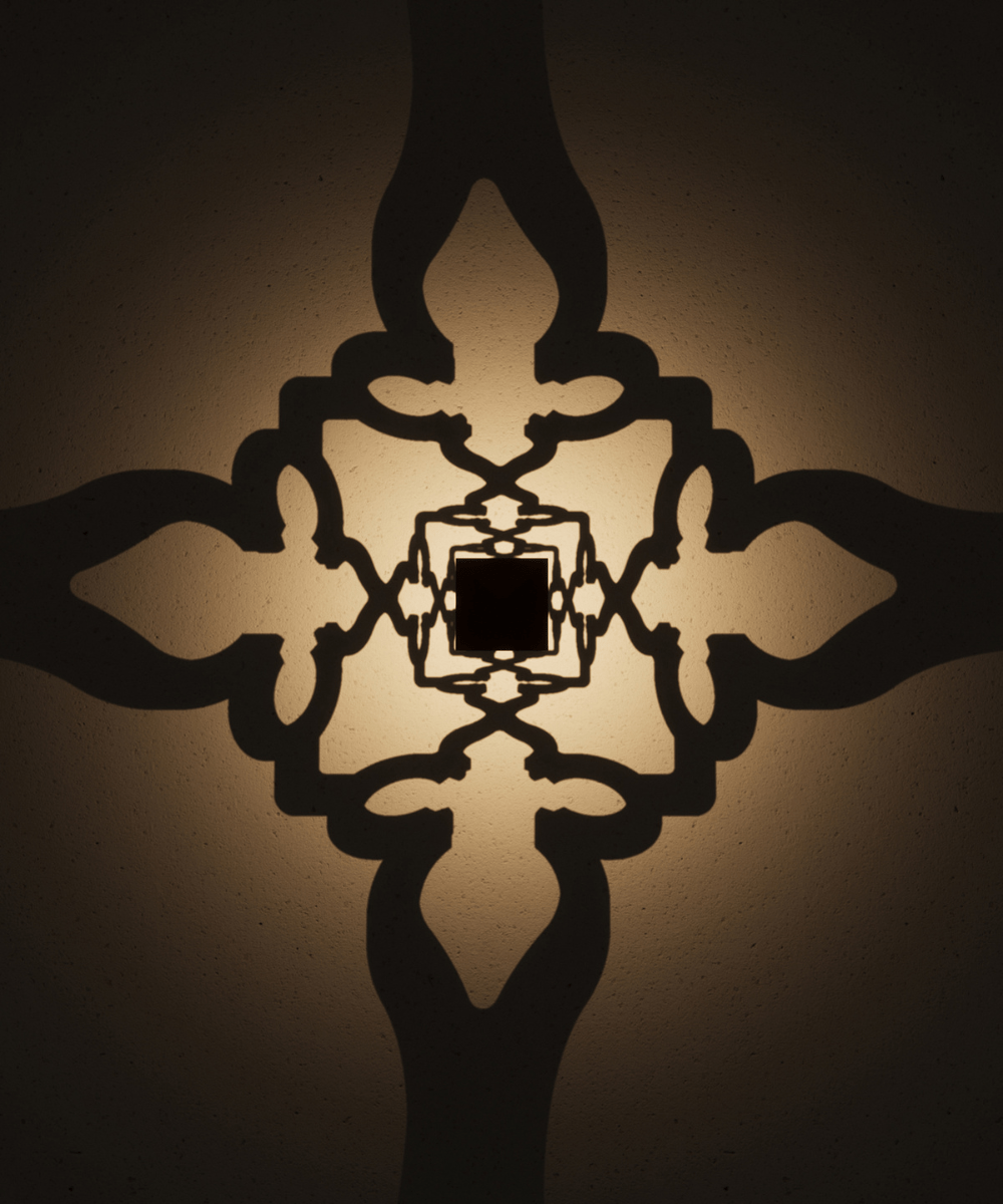 The Courtyard Series – Crosses Design – CE®, by Nightscaping®, ideally suited for semi formal and orderly gardens where a classic, symmetrical pattern is desired. Drawing its interpretation from the French fleur-de-lis pattern, the shadows emitted from this fixture form a stunning chain of interlinking shadows surrounded by light.