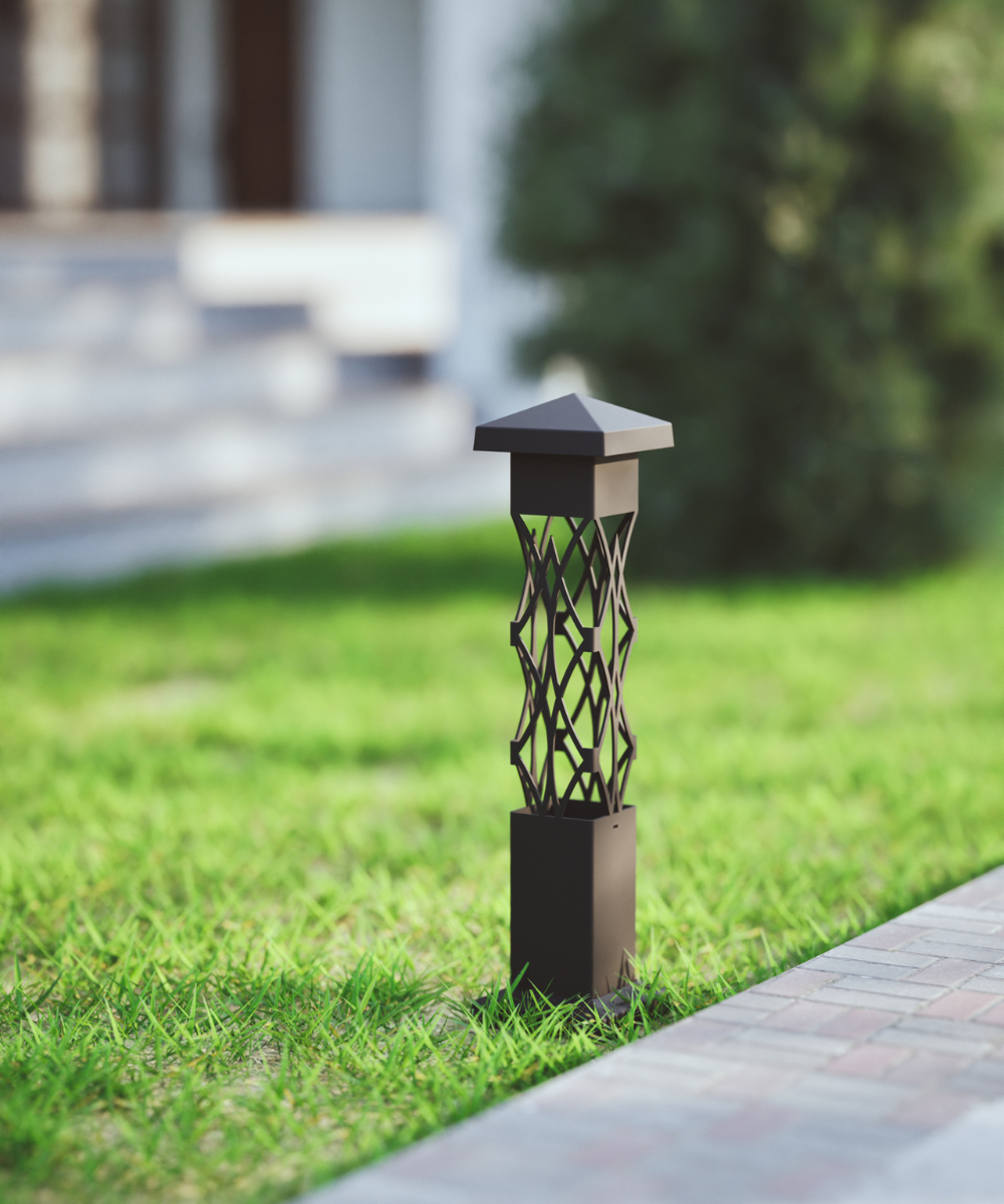 The Nightscaping® Diamond design bollard was inspired by the modern geometric shapes of the University of Sheffield’s Faculty of Engineering building. The designer created a bestselling bollard featuring elongated diamond shapes and a continuous effect design that wraps around all four sides. This uninterrupted geometric pattern contrasts beautifully with the natural landscape plantings.