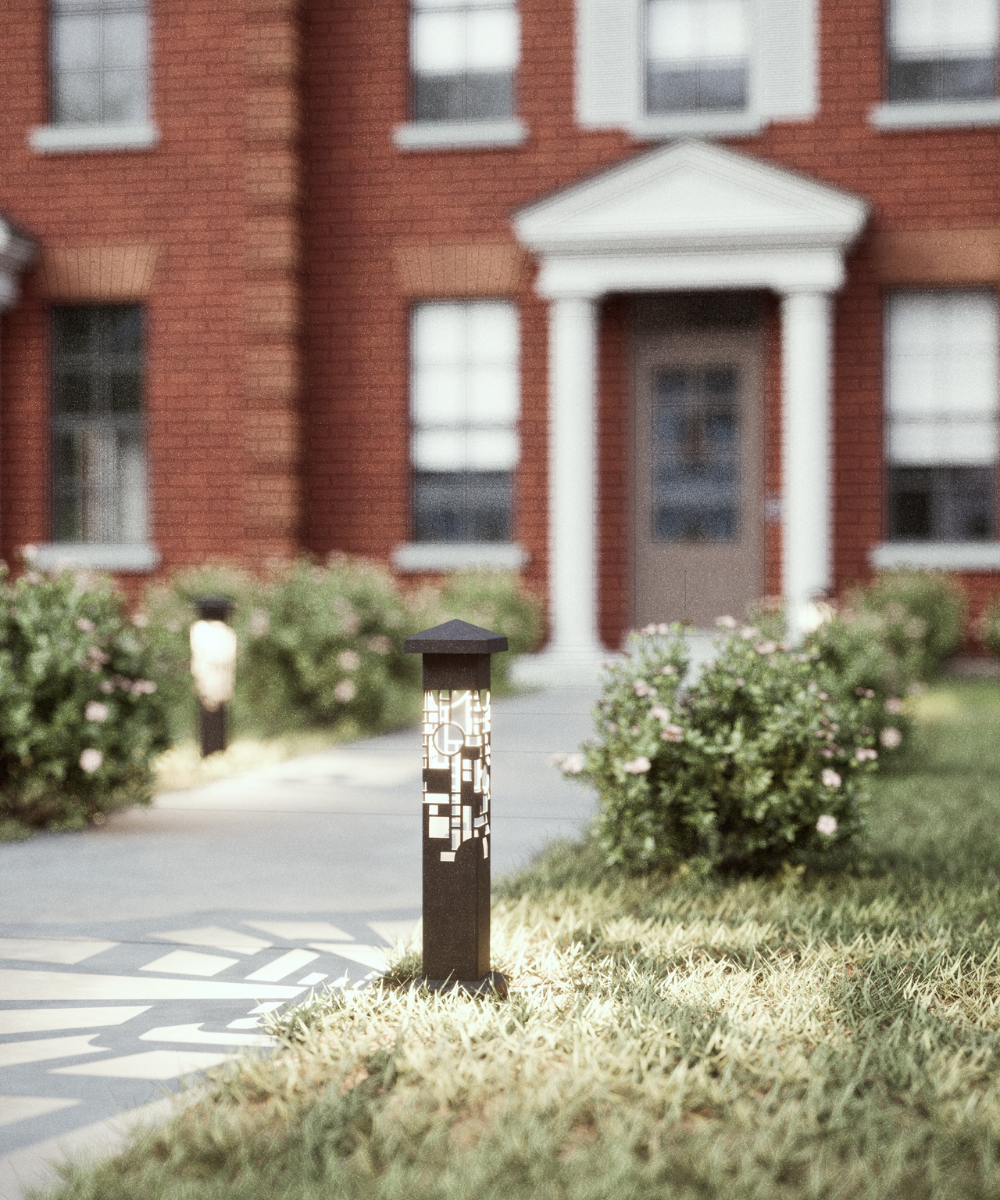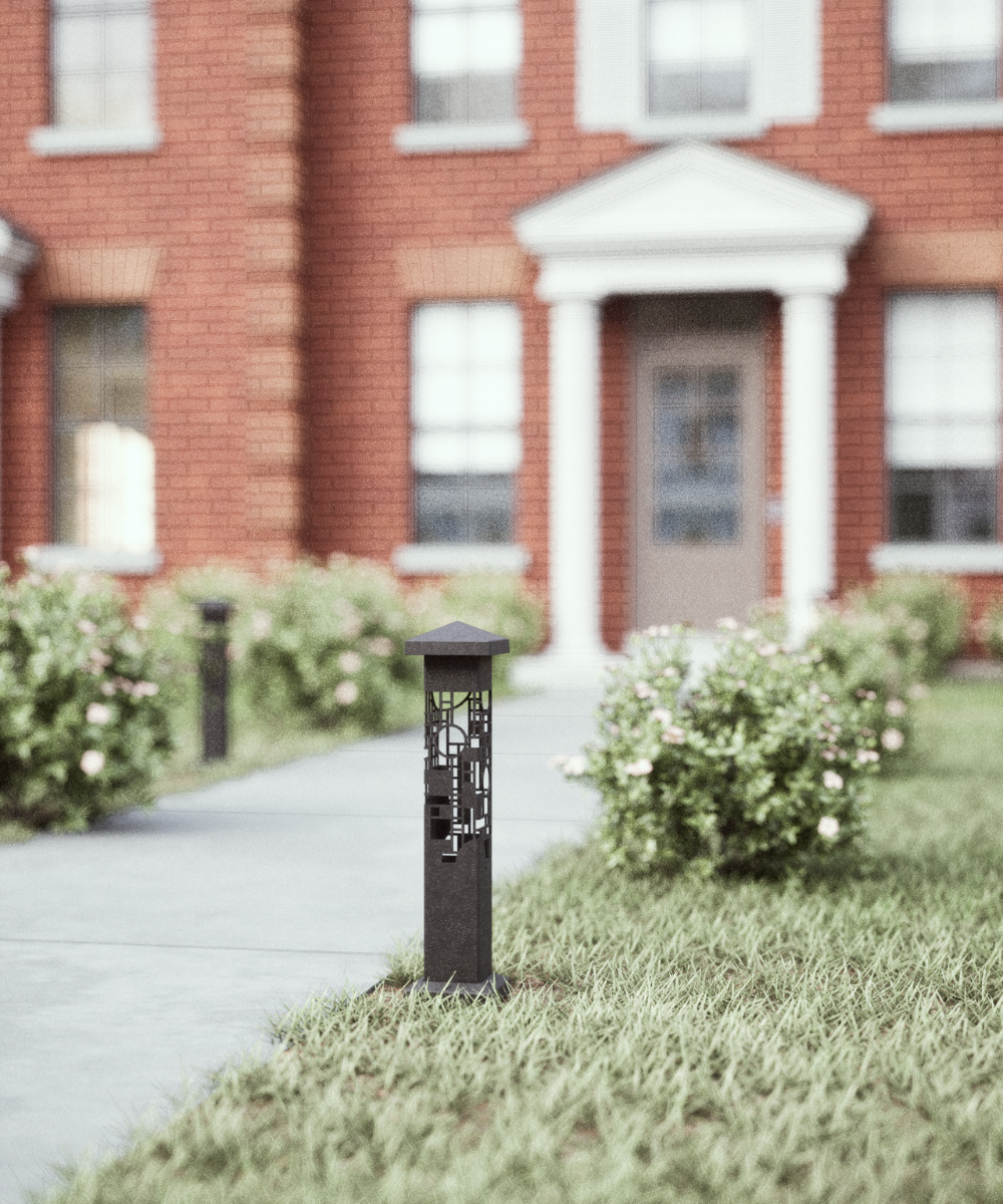 The Wright Geo Design captures the essence of Frank Lloyd Wright’s famed stained glass triptych from the Avery Coonley Playhouse in Riverside, IL. Featuring vibrant geometric shapes reminiscent of a festive parade, this design adds a dynamic flair to any outdoor space, serving as a striking focal point.